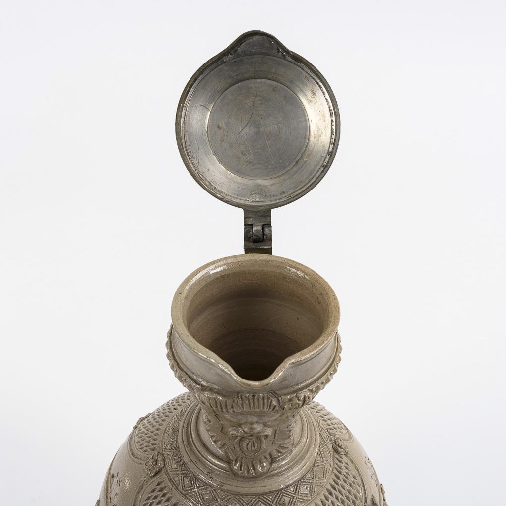 Gründerzeit-Reliefkanne mit Zinndeckel.