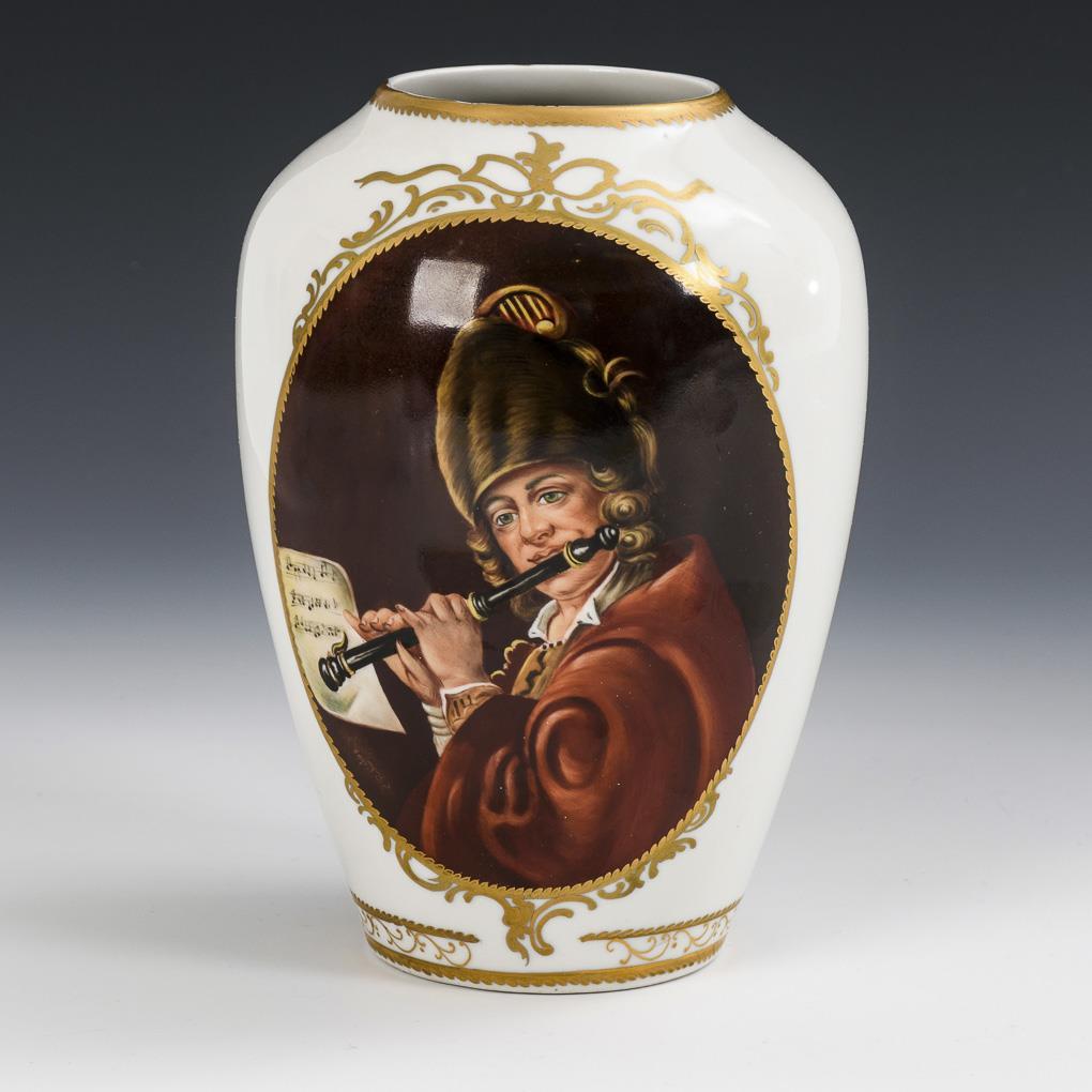 Balustervase mit dem Porträt eines Flötenspielers, nach einem Gemälde des böhmischen Porträtmalers Johann Kupetzky (1667-1740).