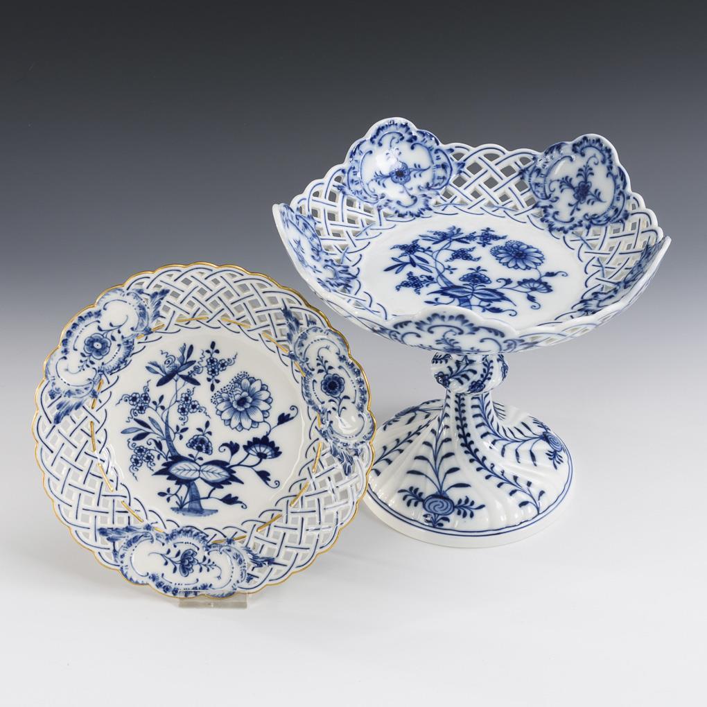 Zwiebelmuster-Tafelaufsatz und -Durchbruchteller.