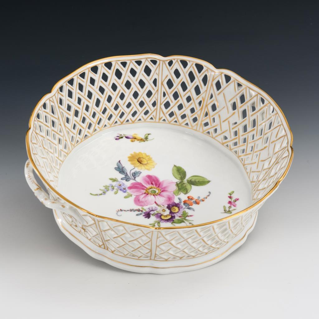 Polychrome Blumenmalerei, Goldstaffage.Ø 25 cm.