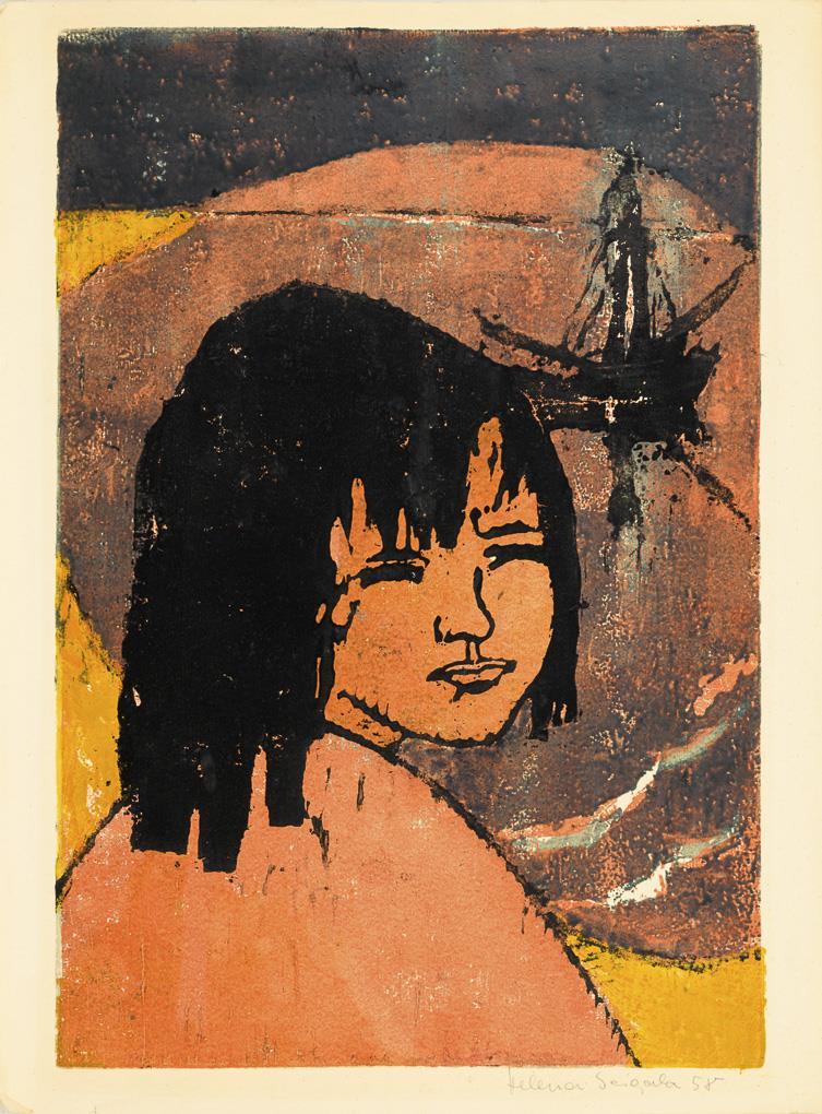 Farbholzschnitt. Bleistiftsignatur. [19]58.