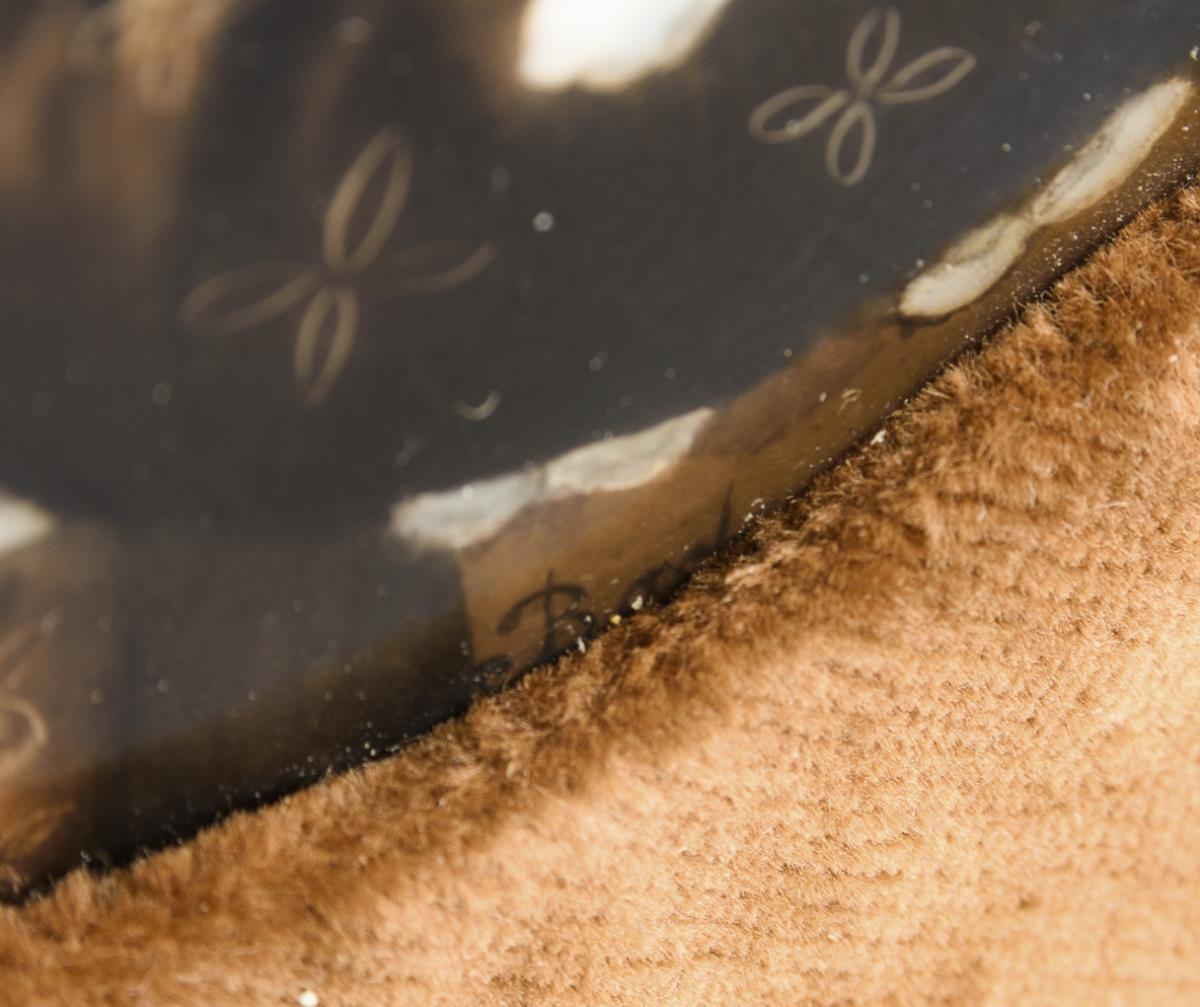 Polychrome Malerei. L 17 cm, im Goldstuckrahmen (33 x 28,5 cm).