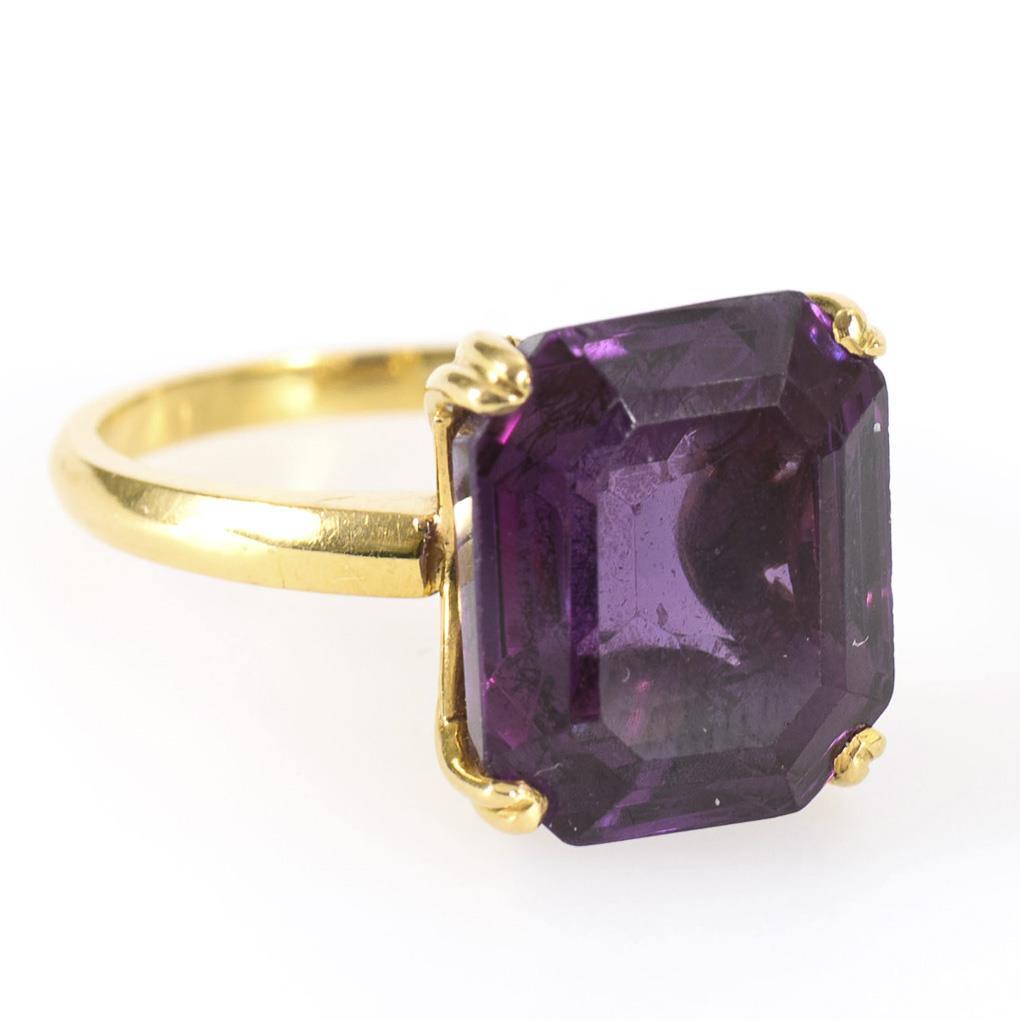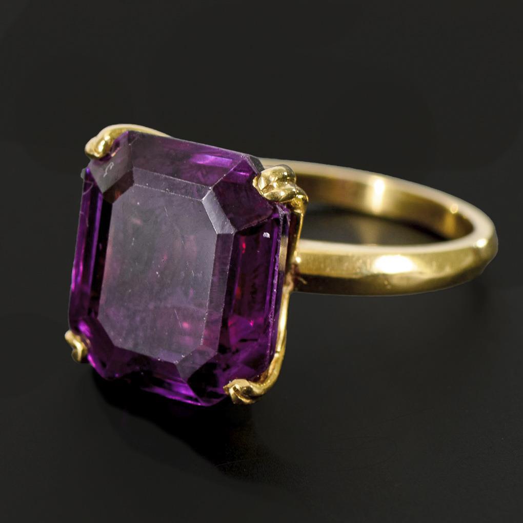 Chatongefasster Amethyst zwischen schmaler Schiene.