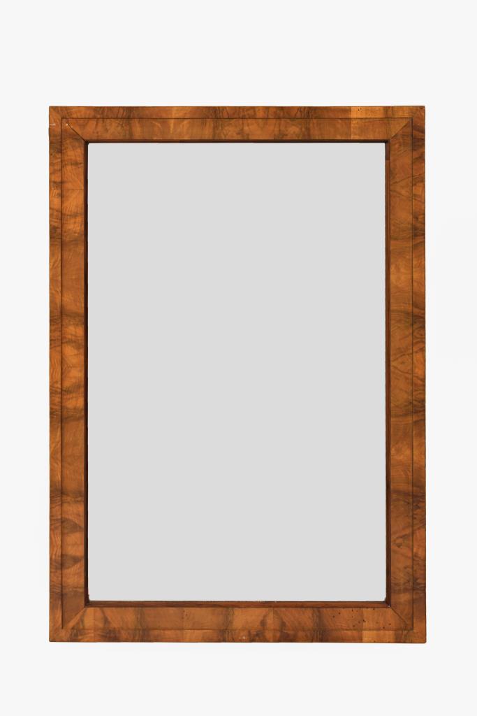 Schlichter rechteckiger Rahmen, facettiertes Spiegelglas, Rückwand mit Kordel zur Aufhängung. Trockenrisse, Spiegelglas wohl ergänzt und mit blinden Stellen im Randbereich.