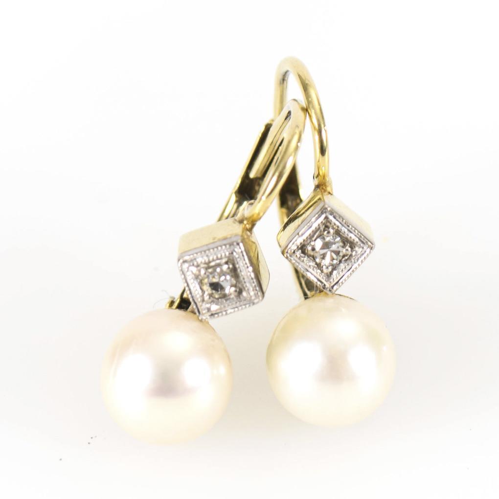 Zuchtperle und kleiner, eingelassener Diamant, an Federbügel.