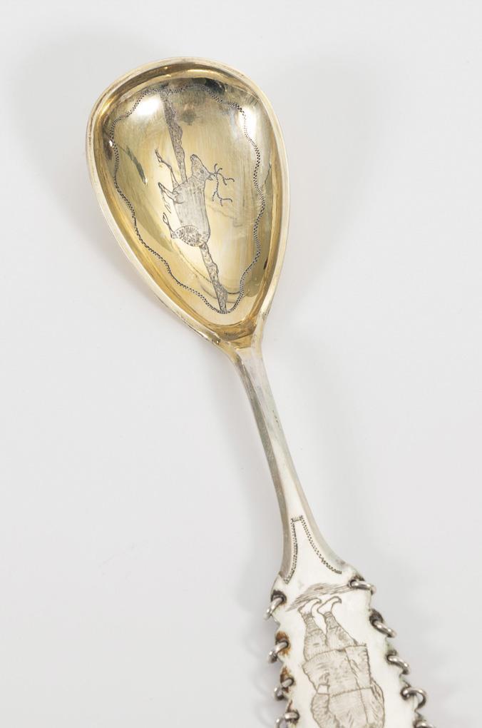 1x mit vergoldeter Laffe. L 10 - 15 cm. 122 g.