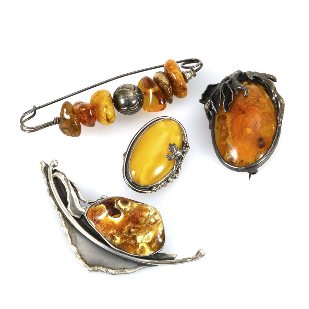 4 Bernsteinbroschen.