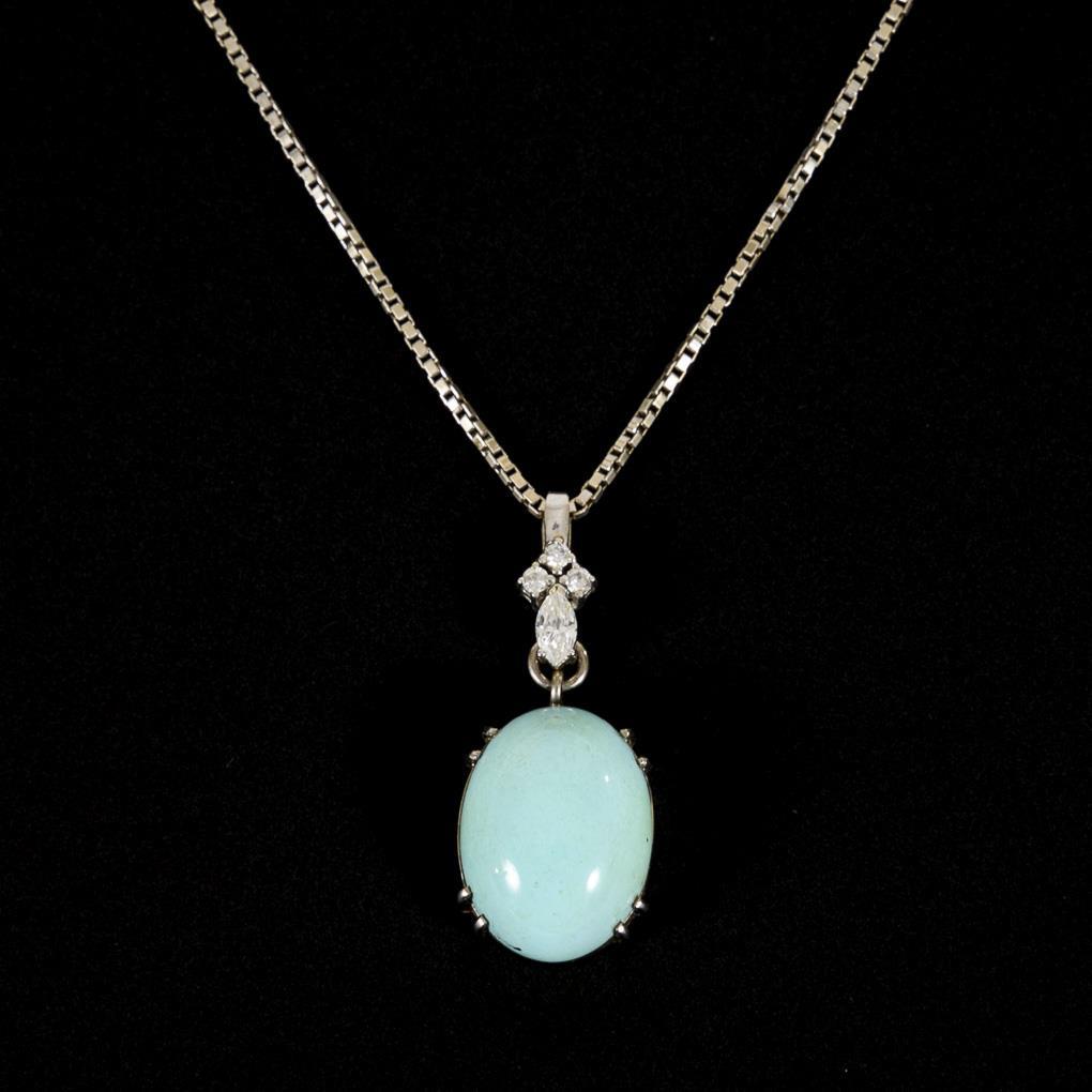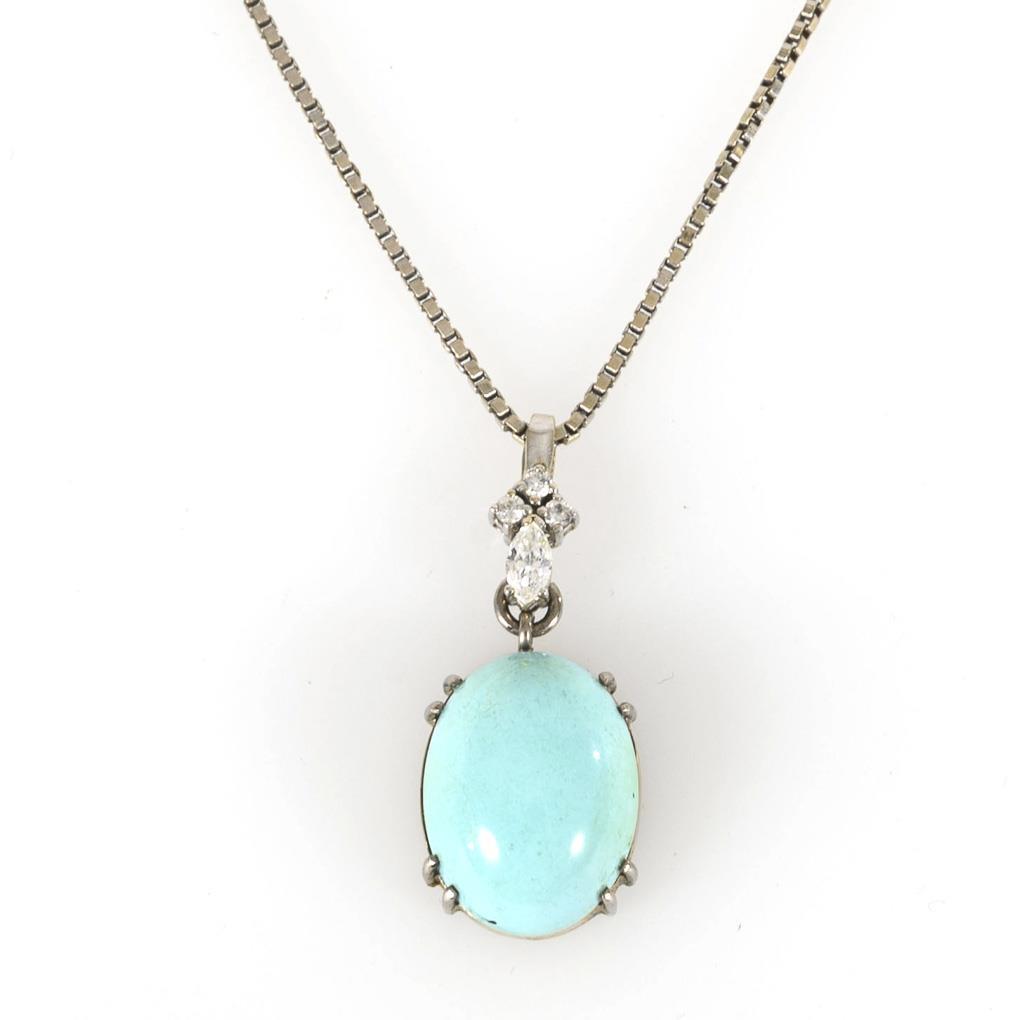 Anhänger mit Türkis, Diamant und Brillanten, an Kette.
