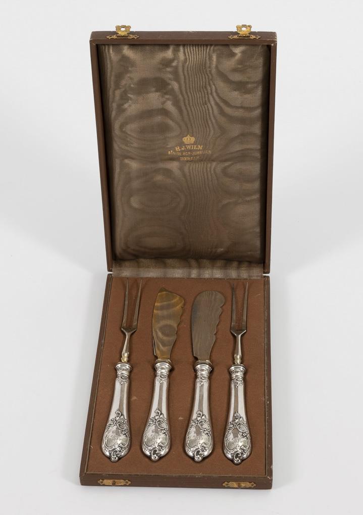 4-teilige silberne Vorlegegarnitur in Schatulle. H. J. Wilm.