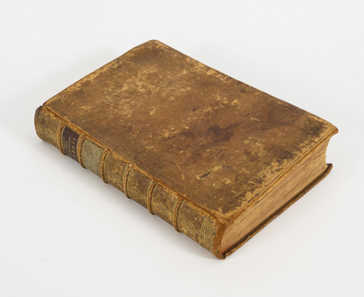 Vier Teile in einem Band. Titelkupfer, Titel, (12), 588 Seiten mit 4 Kupferstichen im Text, 29 ganzseitigen und 22 gefalteteten Tafel. sowie Vignetten und Initialen. Im Ledereinband. Guter, altersgemäßer Zustand, Einband mit Nutzungsspuren.