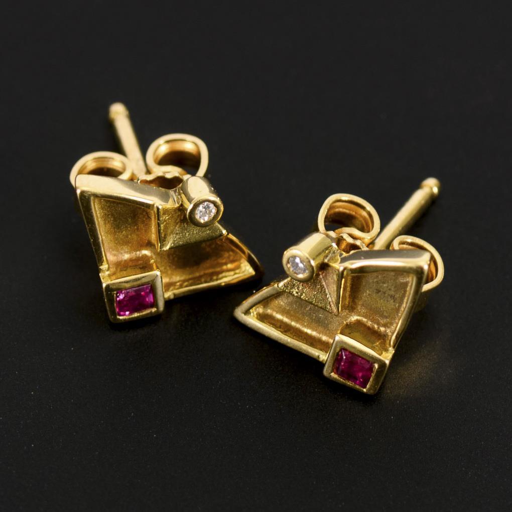 Kleines Ohrsteckerpaar mit Rubinen und Diamanten.
