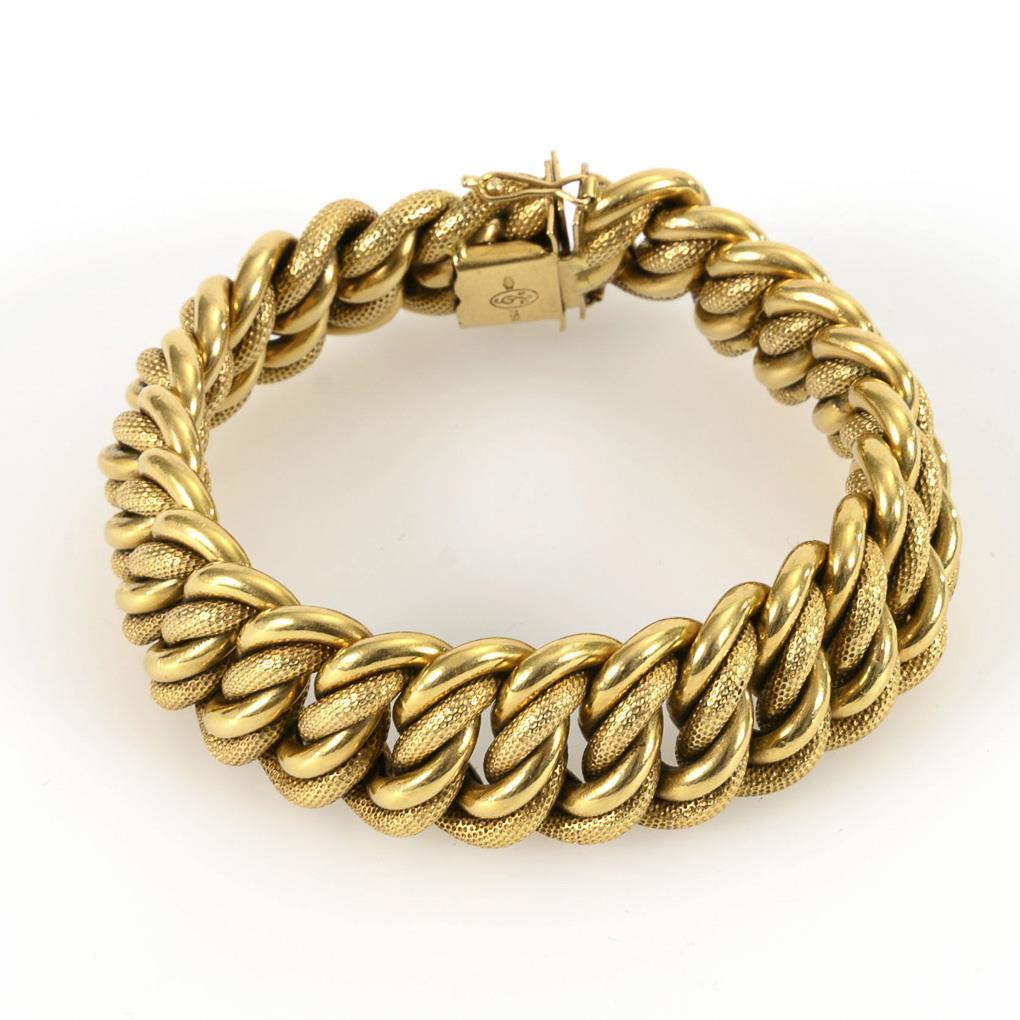Gelbgold 750 gestempelt. Punze: Violinenschlüssel O/A. 20,5 x 2 cm. 56,5 g.