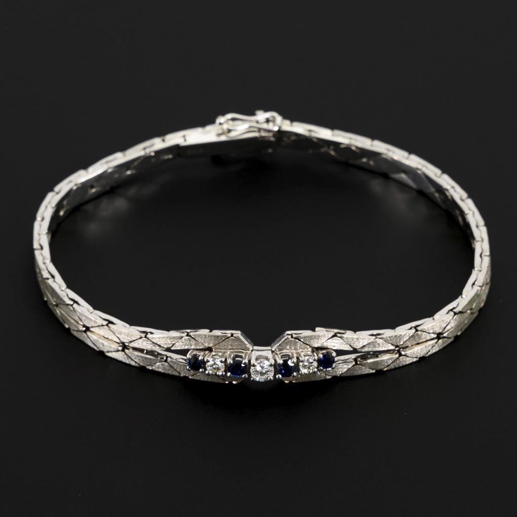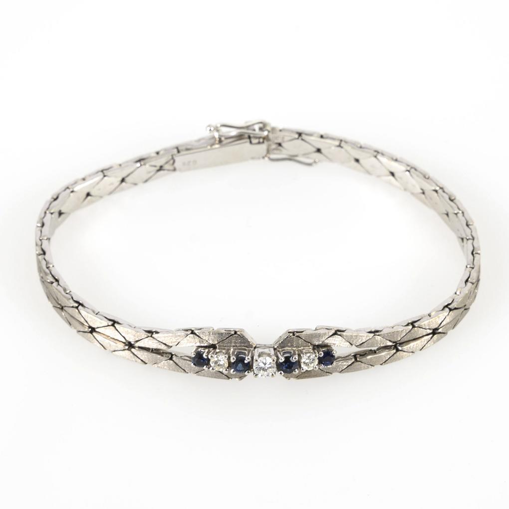 4 chatongefasste Saphire und 3 Brillanten, zwischen Zierpanzerkette, an Kastenschloss mit 2 Achtersicherungen.