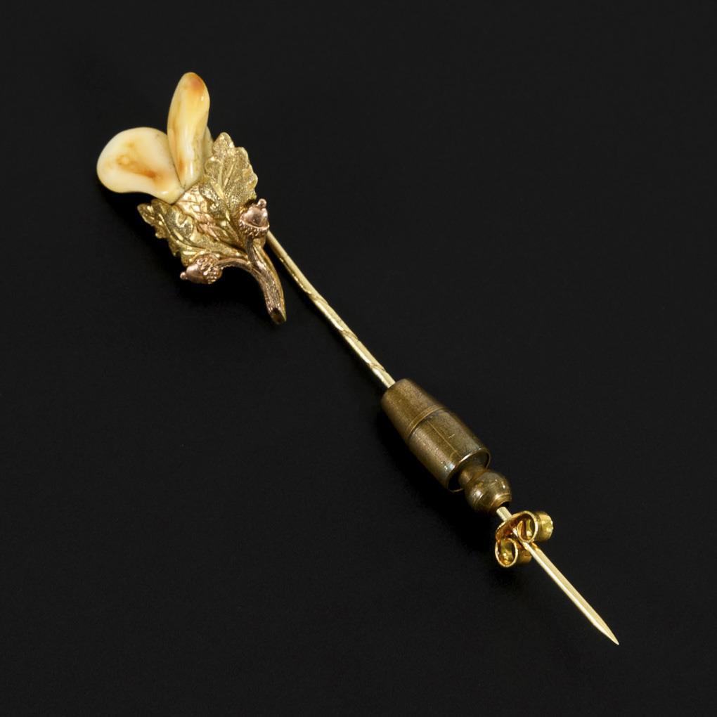 Gelbgold/Roségold 585 gestempelt. 2,5 x 1,5 cm. Nadel L 5,7 cm. 3,7 g.