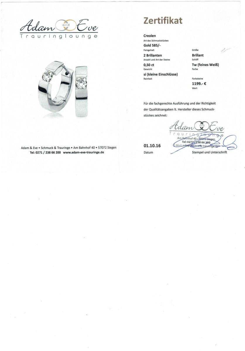 Mittlere Klappcreolen mit zargengefassten Brillanten.