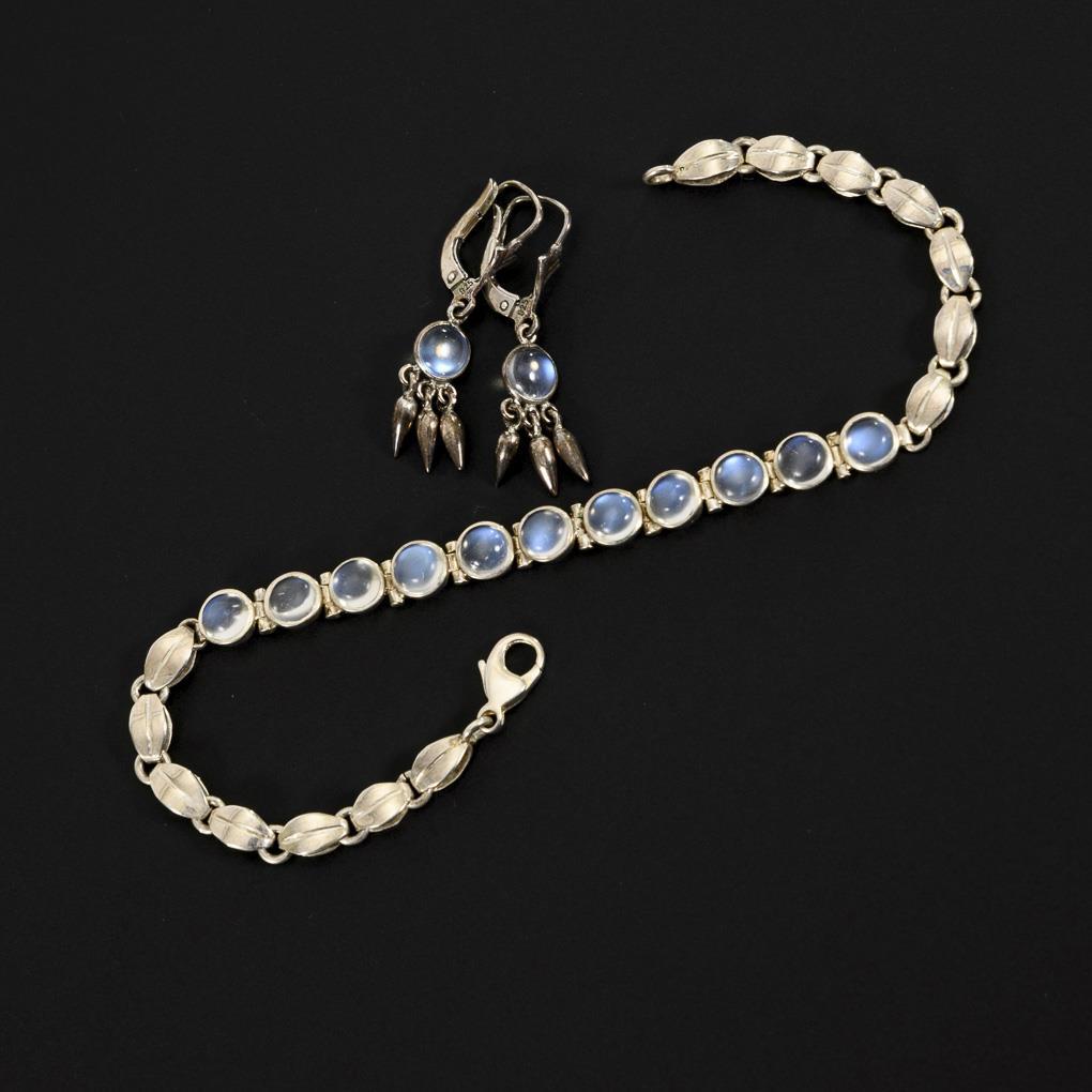 Armband und Ohrhängerpaar mit Mondsteinen.