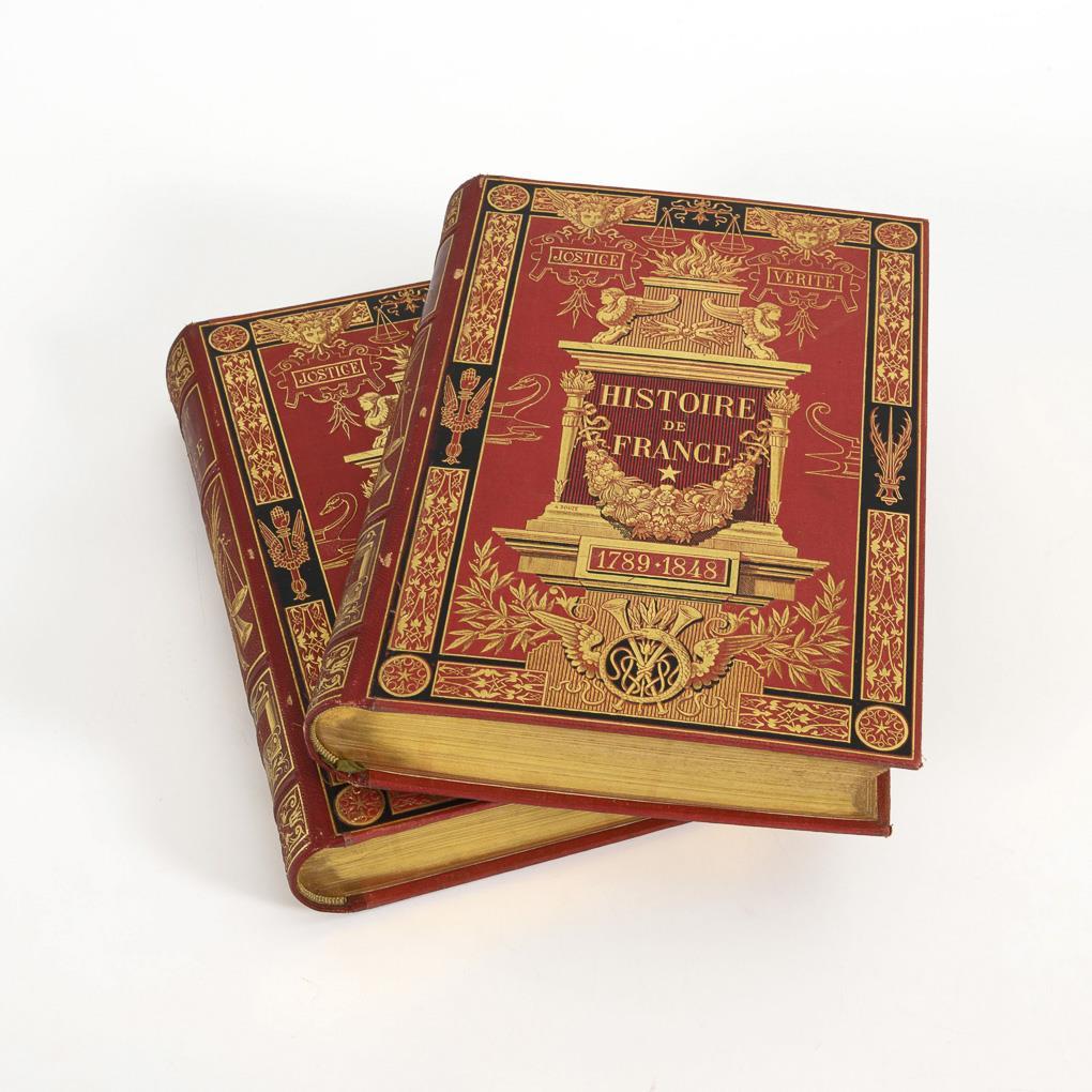 725 und 789 Seiten mit zahlreichen Holzstichen, im roten goldgeprägten Prachteinband mit Goldschnitt. In französischer Sprache. Seiten schwach stockfleckig.