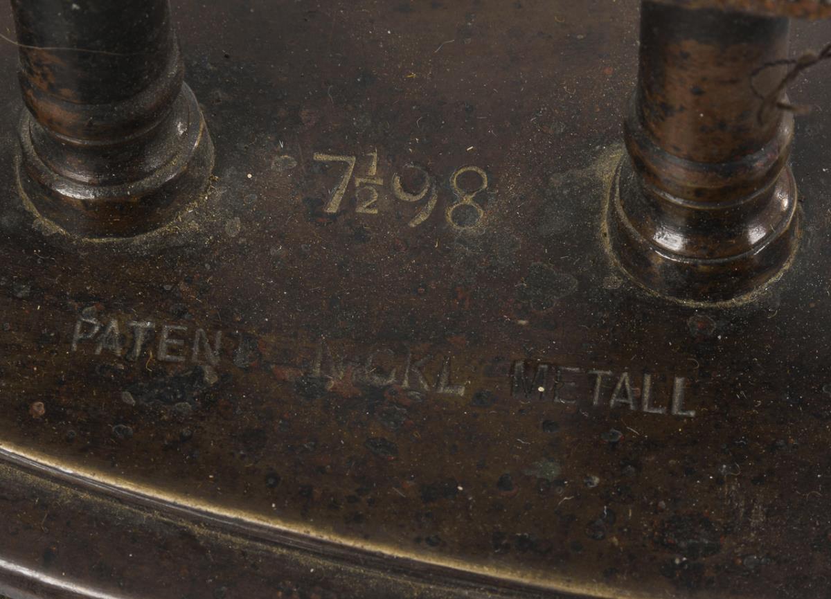 Auf dem Kohlebügeleisen: "7 1/2 98" und "Patent Nickl Metall". 18./19. Jh.