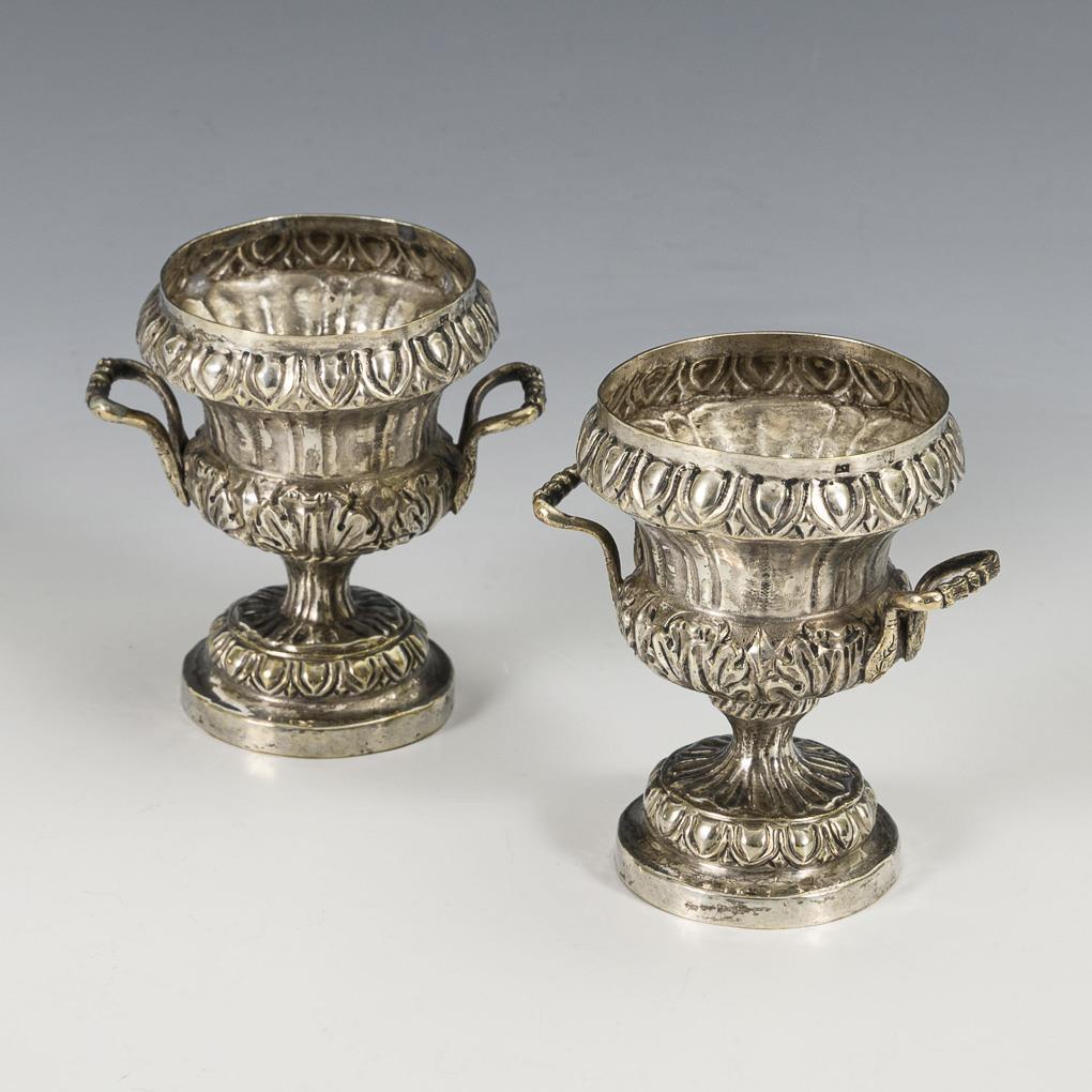 Handgetriebene Kraterväschen, sogenannte "Medicivasen". Altersspuren, Fußansatz innen gelötet.