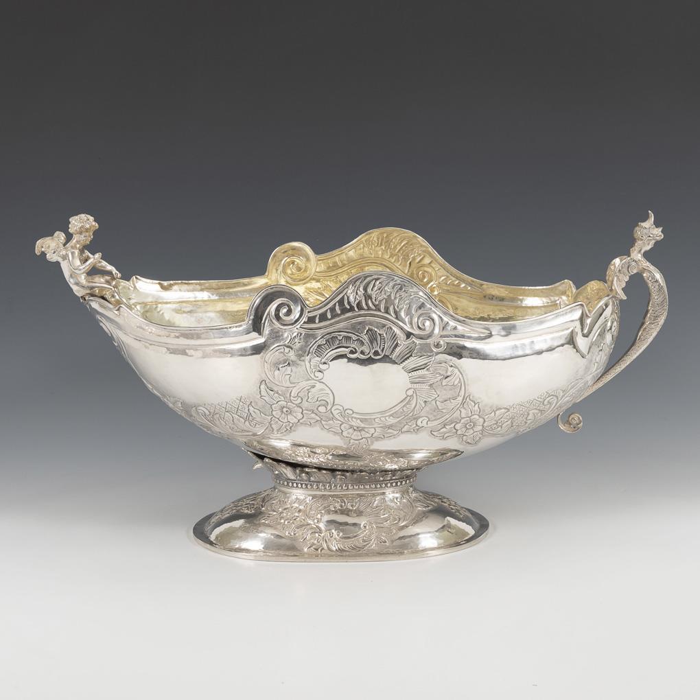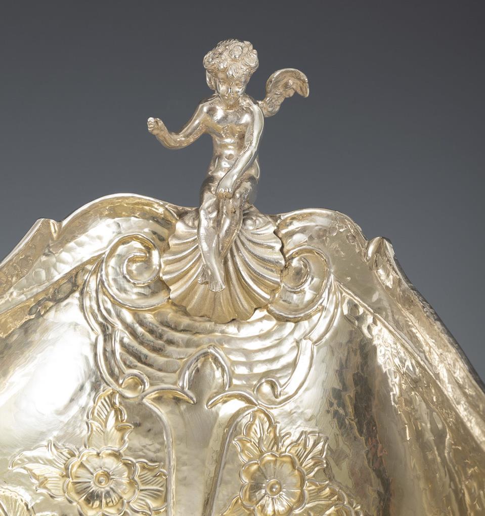 Sterlingsilber, innen vergoldet. 29,5 x 56 x 27 cm. Ca. 3500 g.