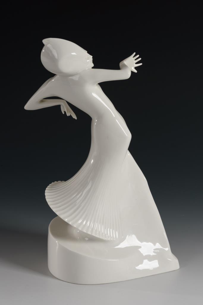 Art-déco-Plastik einer Tänzerin im plissierten Kleid. Rechte Hand restauriert.