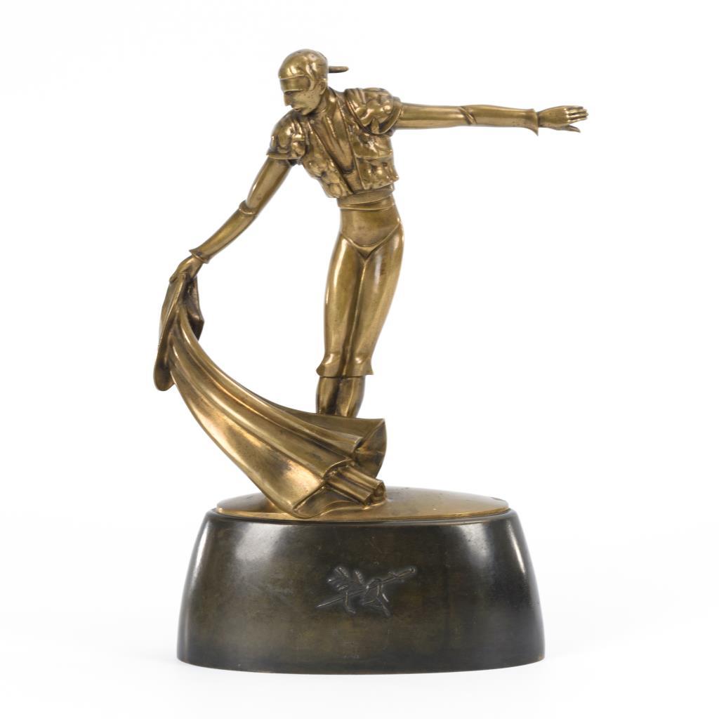Bronze goldbraun patiniert, Bronzesockel dunkel patiniert.Bezeichnet.H 26 / 34,5 cm.