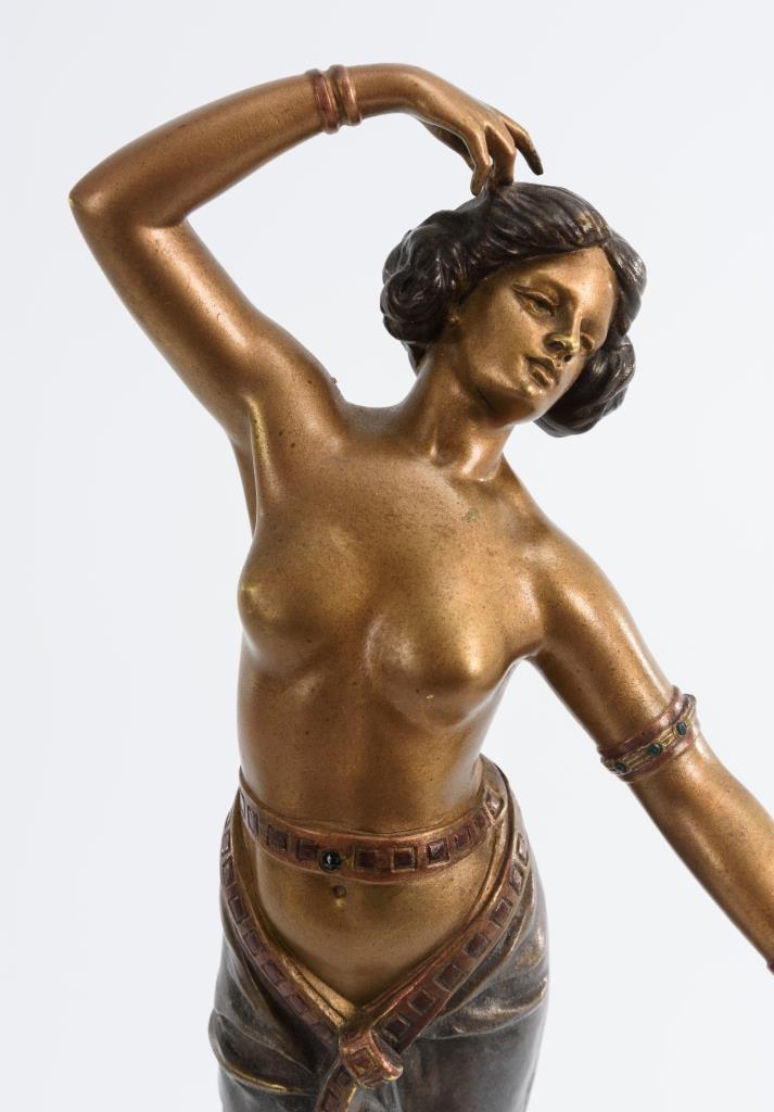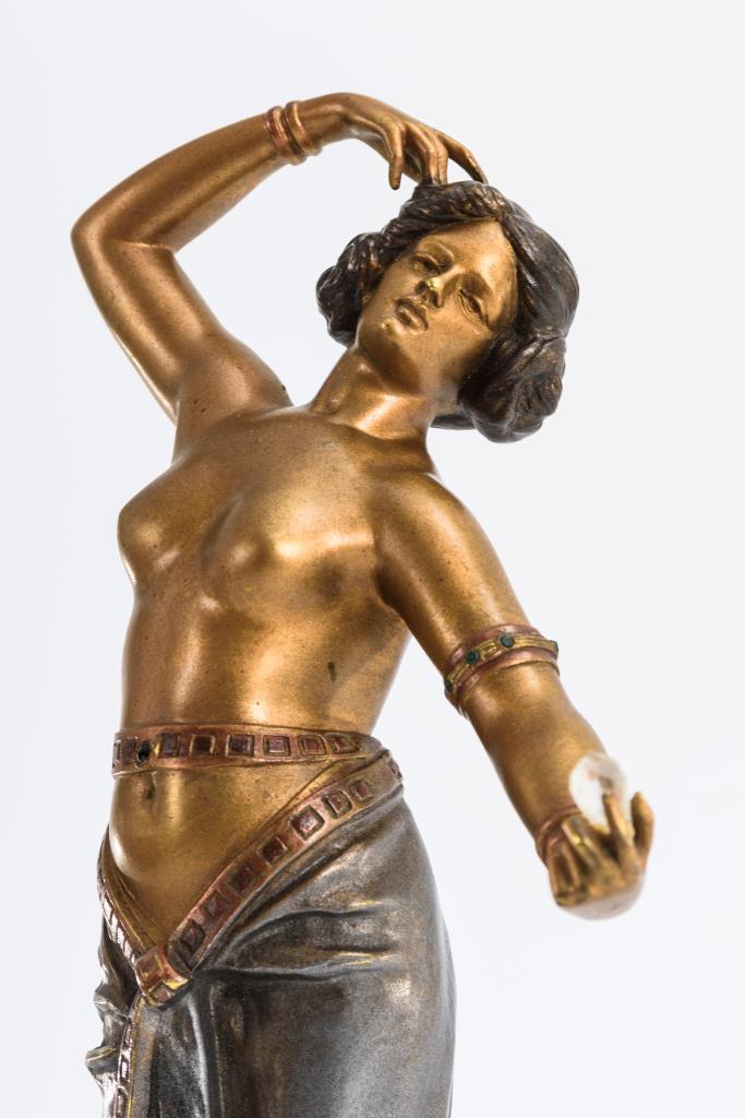 Ausdruckstänzerin mit freiem Oberkörper, einen "Edelstein" in der Hand haltend. Einige wenige Alters-/Gebrauchsspuren.