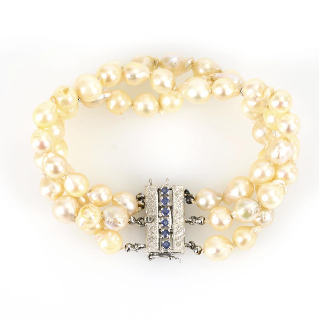 3-reihiges Zuchtperlenarmband mit Zierschließe.