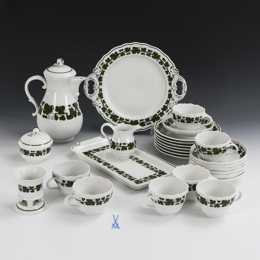 Kaffeeservice mit Weinlaubdekor. Meissen.