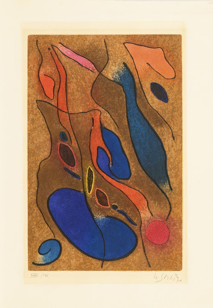 Farbradierung auf Bütten. Stifttsignatur. [1970]. Exemplar: XXVI/135, Prägestempel "Antares Edition d'Art Saint-Cloud".