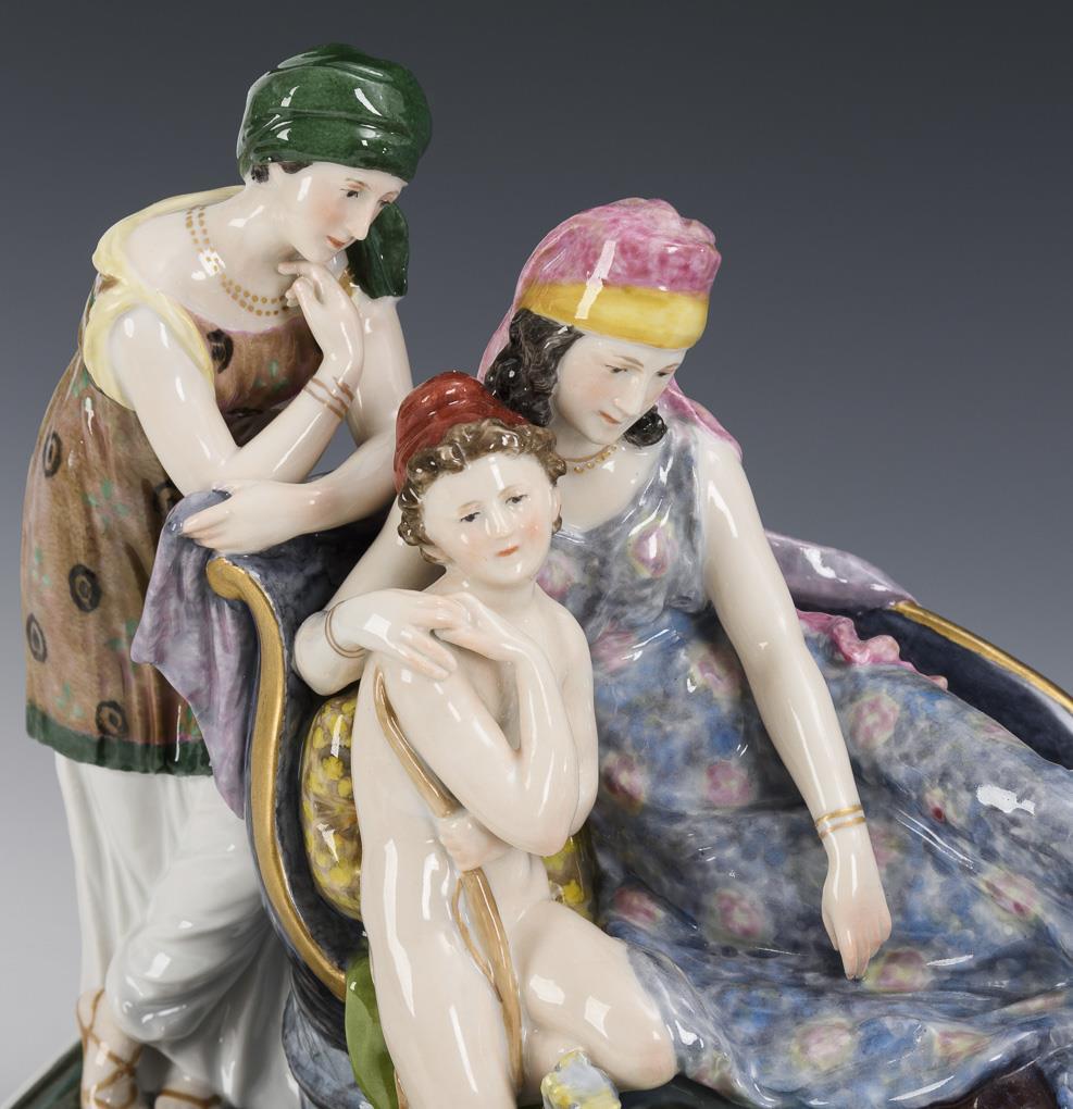 Gruppe der lagernden Dido mit Amorknaben sowie des vor ihr sitzenden Aeneas, schauseitig bezeichnet "Enee devant la reine Didon.". Rechte Hand des Aeneas restauriert.