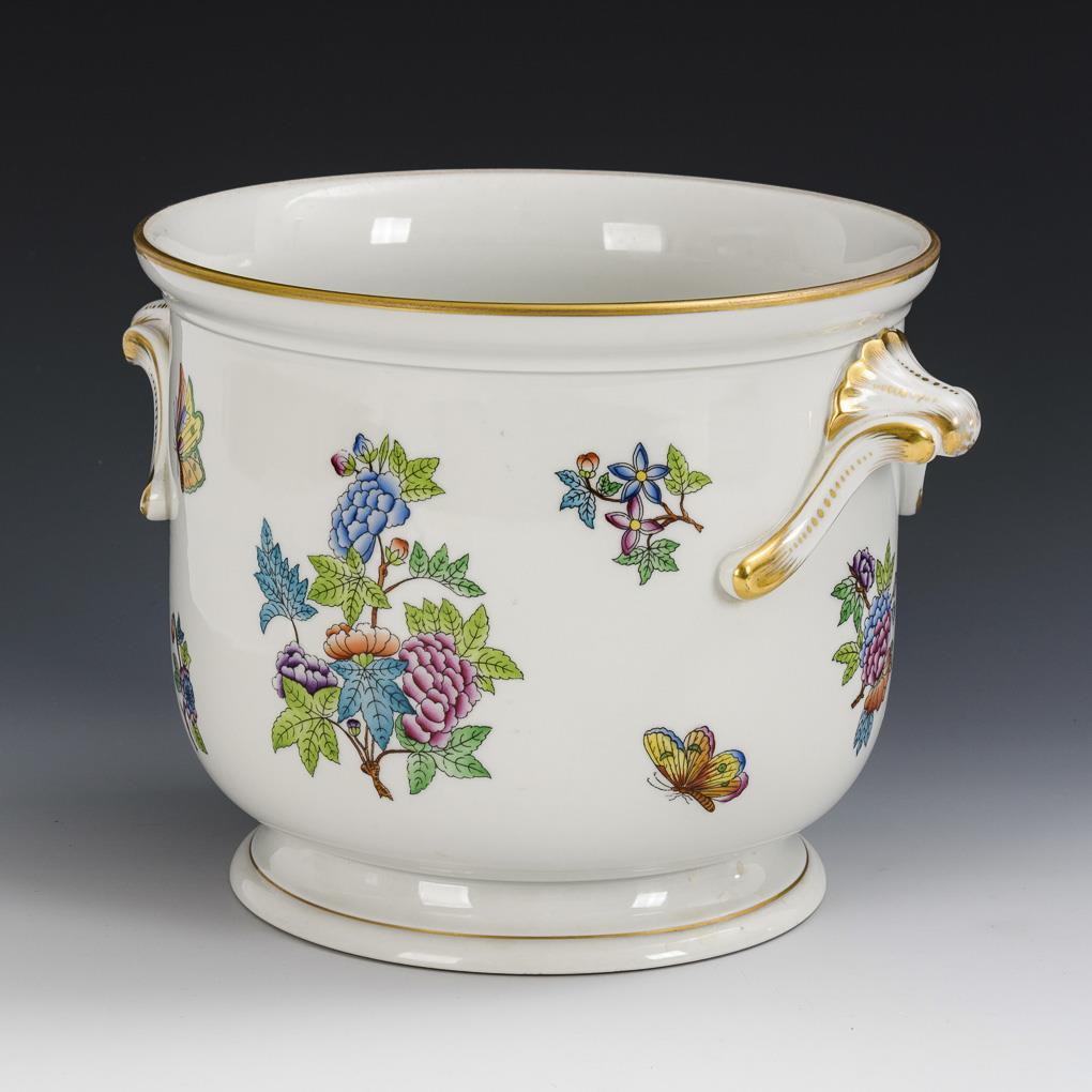 Blumenübertopf mit zwei Handhaben und indianischem Blumen- und Schmetterlingsdekor.