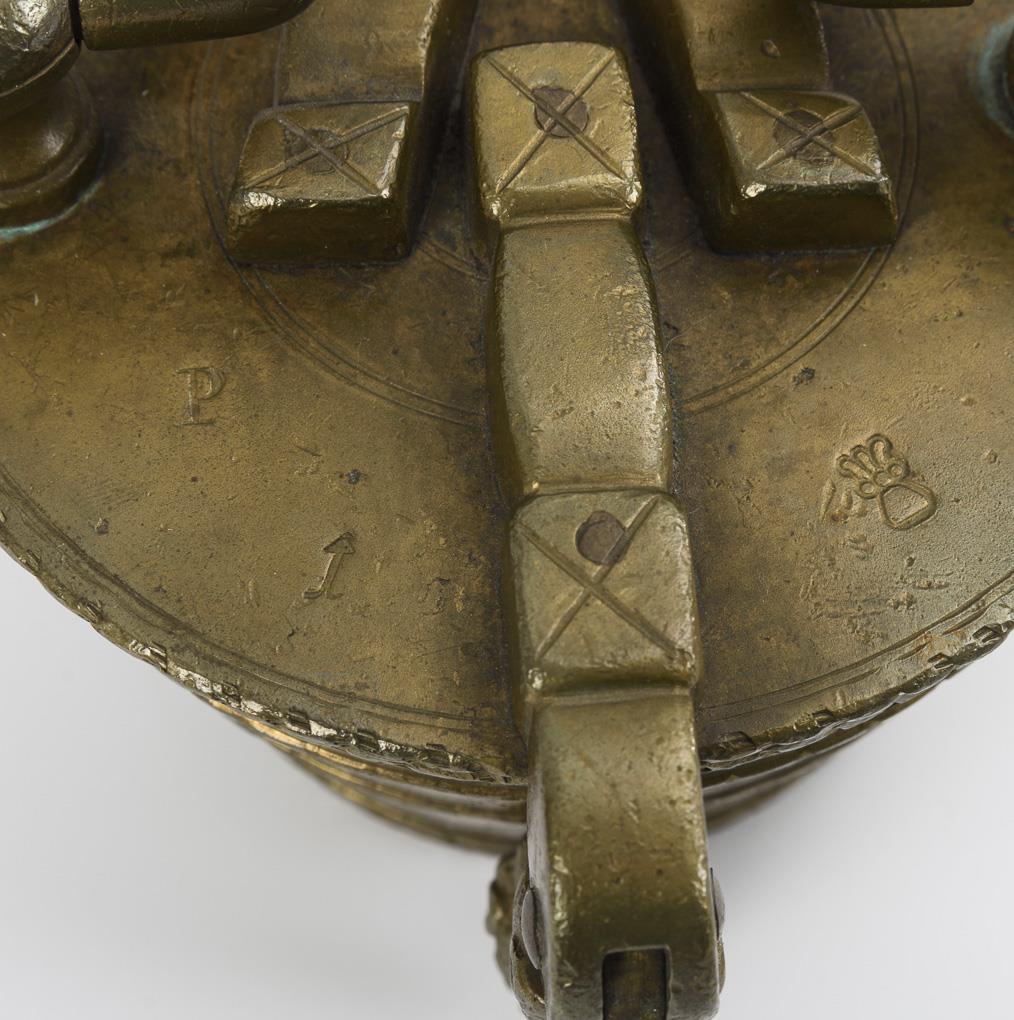 Auf dem Deckel gepunzt: Meistermarke(Gefäß)/I/P(für Portugal)/A über undeutlicher Punze. Im Hausboden "1791" eingeschlagen. Wohl 19./20. Jh.