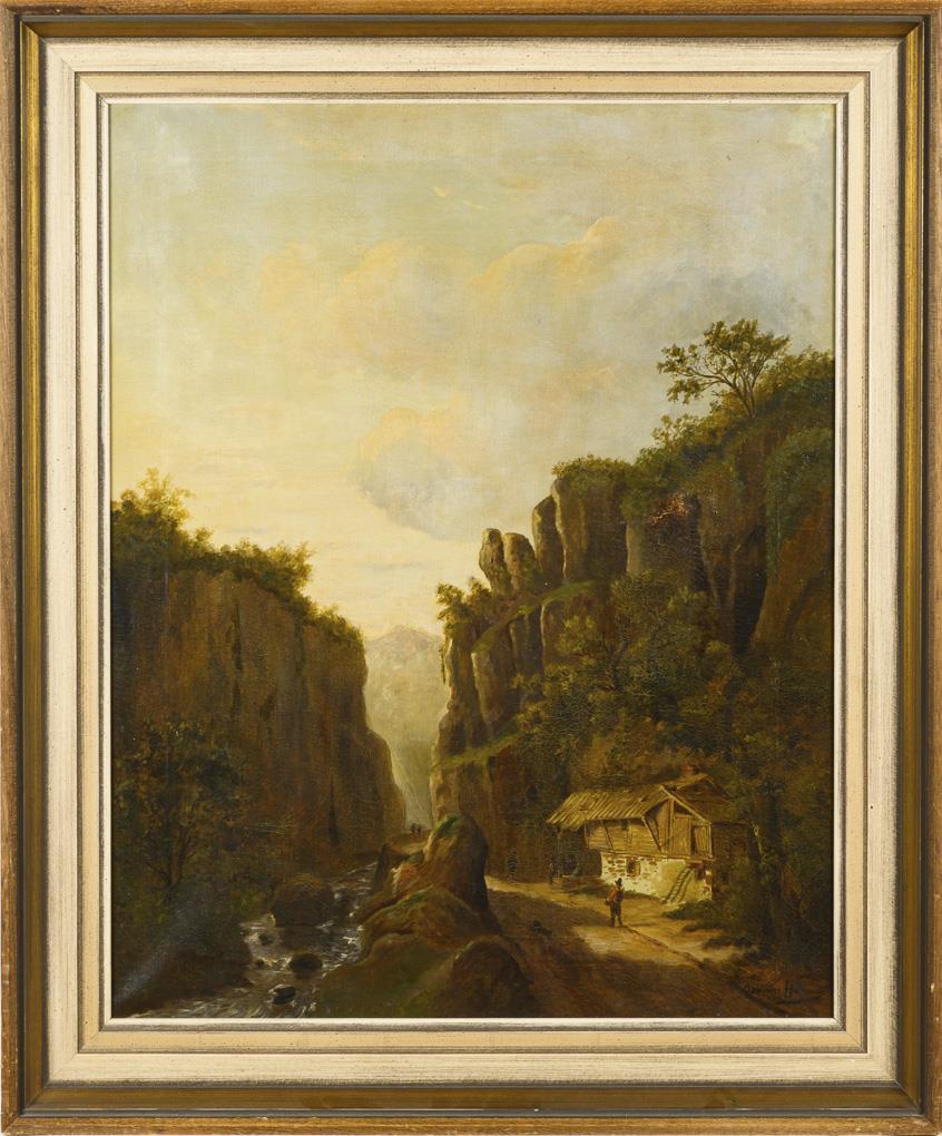 Undeutlich signiert: Elbsandsteingebirge mit Staffage