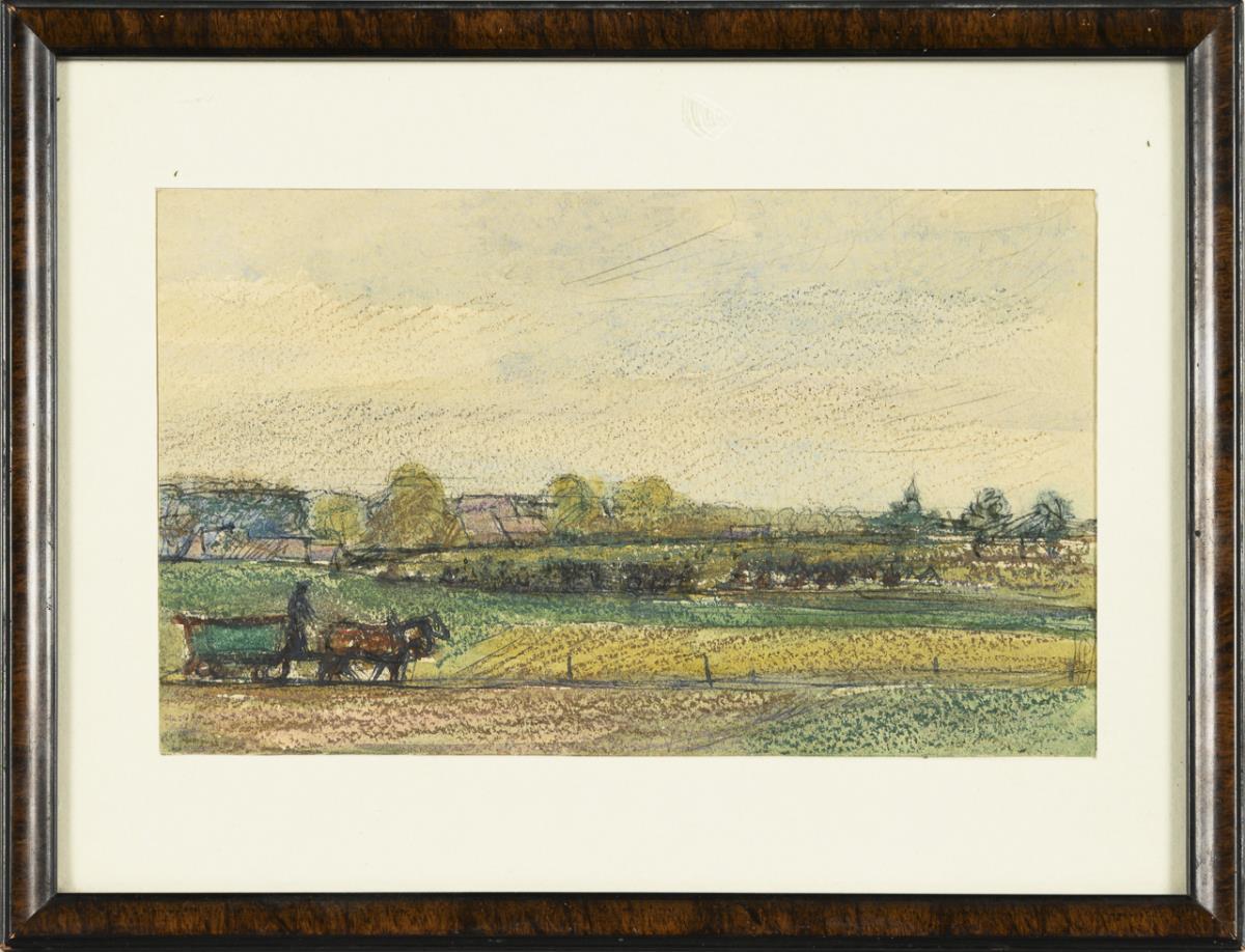 Frühe Landschaftsdarstellung mit Pferdekutsche