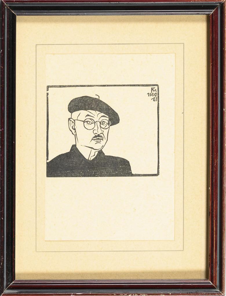 Verso typografisch bezeichnet "CONRAD FELIXMÜLLER, 'Selbstbildnis mit Baskenmütze' Original-Holzschnitt, Werkverzeichnis Söhn 588, 1960/61". Blatt leicht lichtgebräunt.