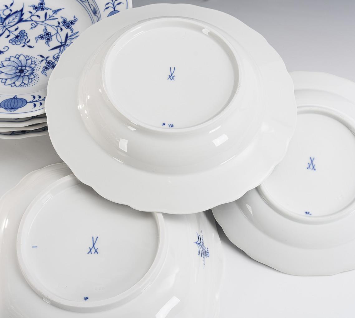 5 Zwiebelmuster-Suppenteller, 1 -Teller und 1 -Schüssel. Meissen.
