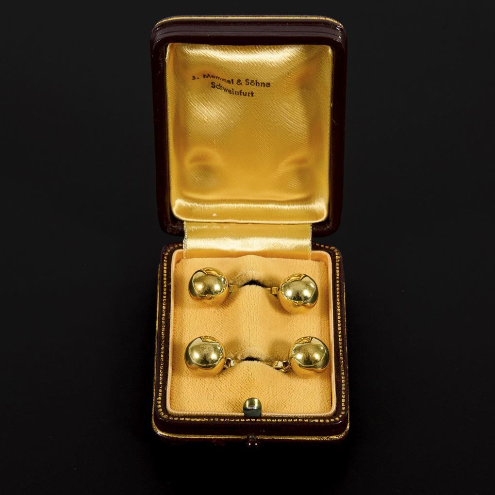 Manschettenknopf-Paar im Originaletui J. Memmel & Söhne, Schweinfurt.