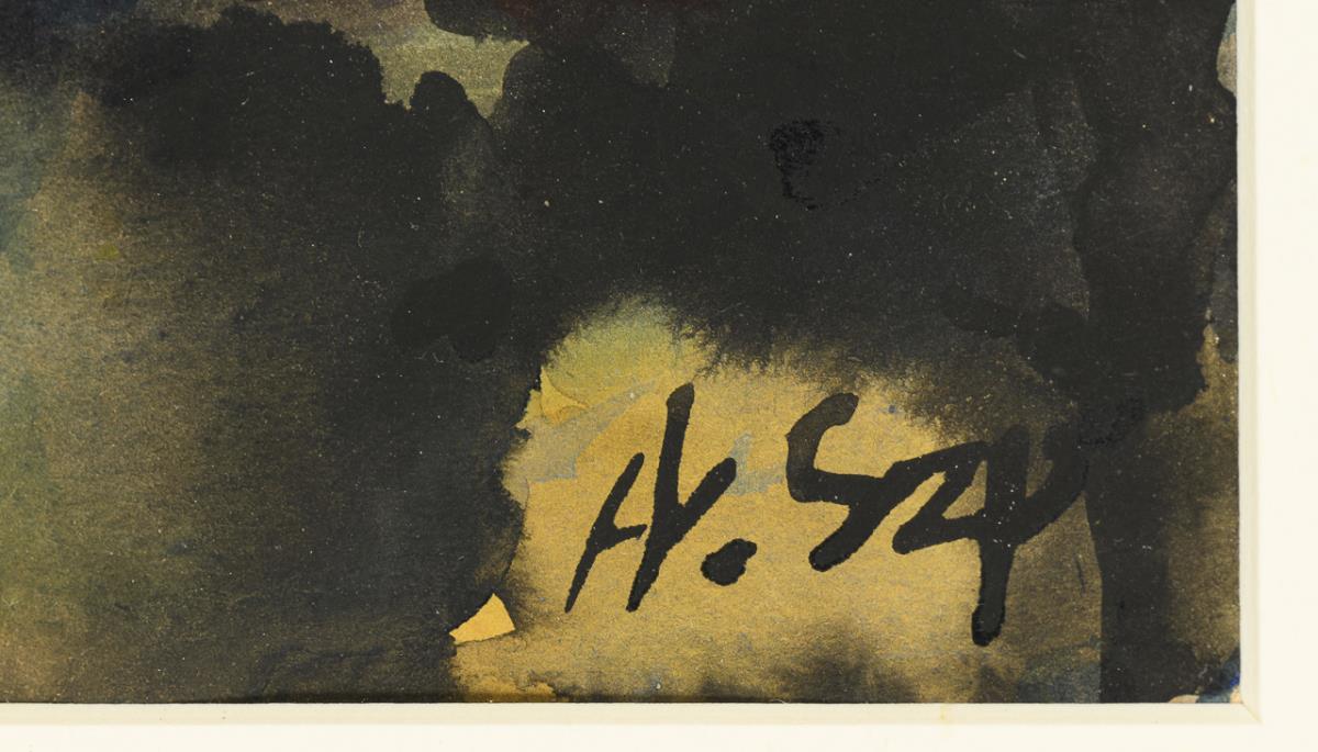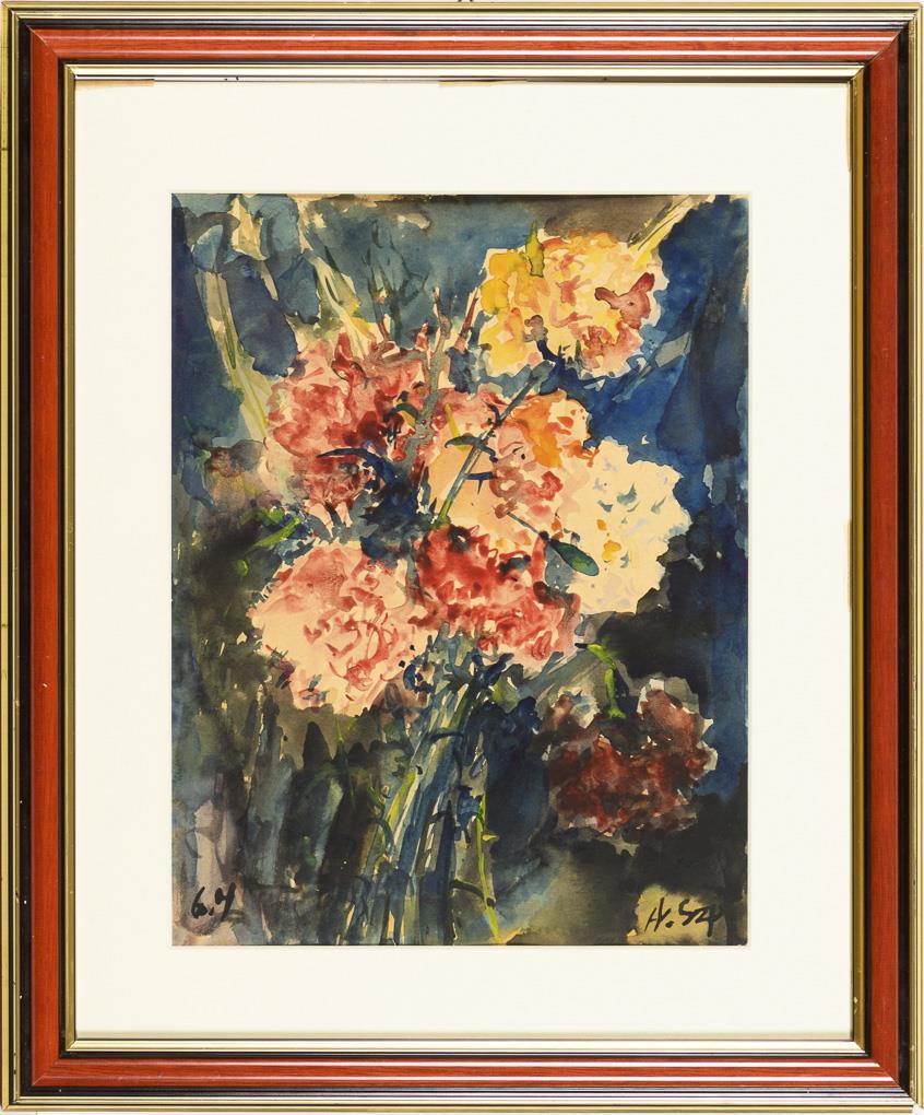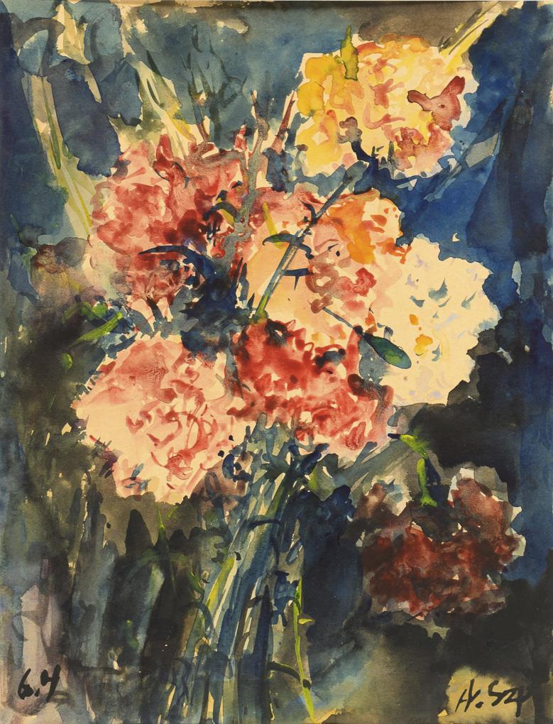 Aquarell. Rechts unten monogrammiert, verso Widmung des Künstlers an seinen Freund Arno Vogel zur goldenen Hochzeit. (19)64.