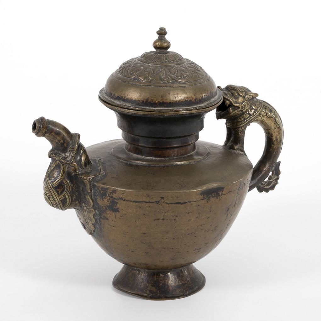Große Messingkanne mit Fabelwesen.