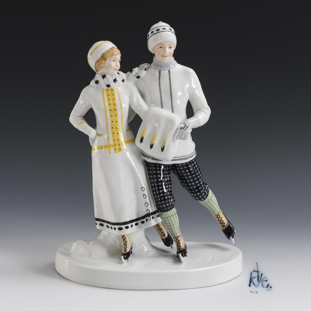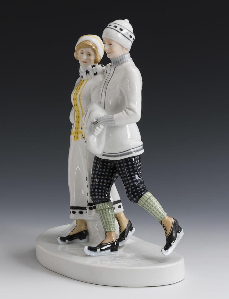 Seltene Jugendstil-Figur: Paar Schlittschuhläufer. ENS.