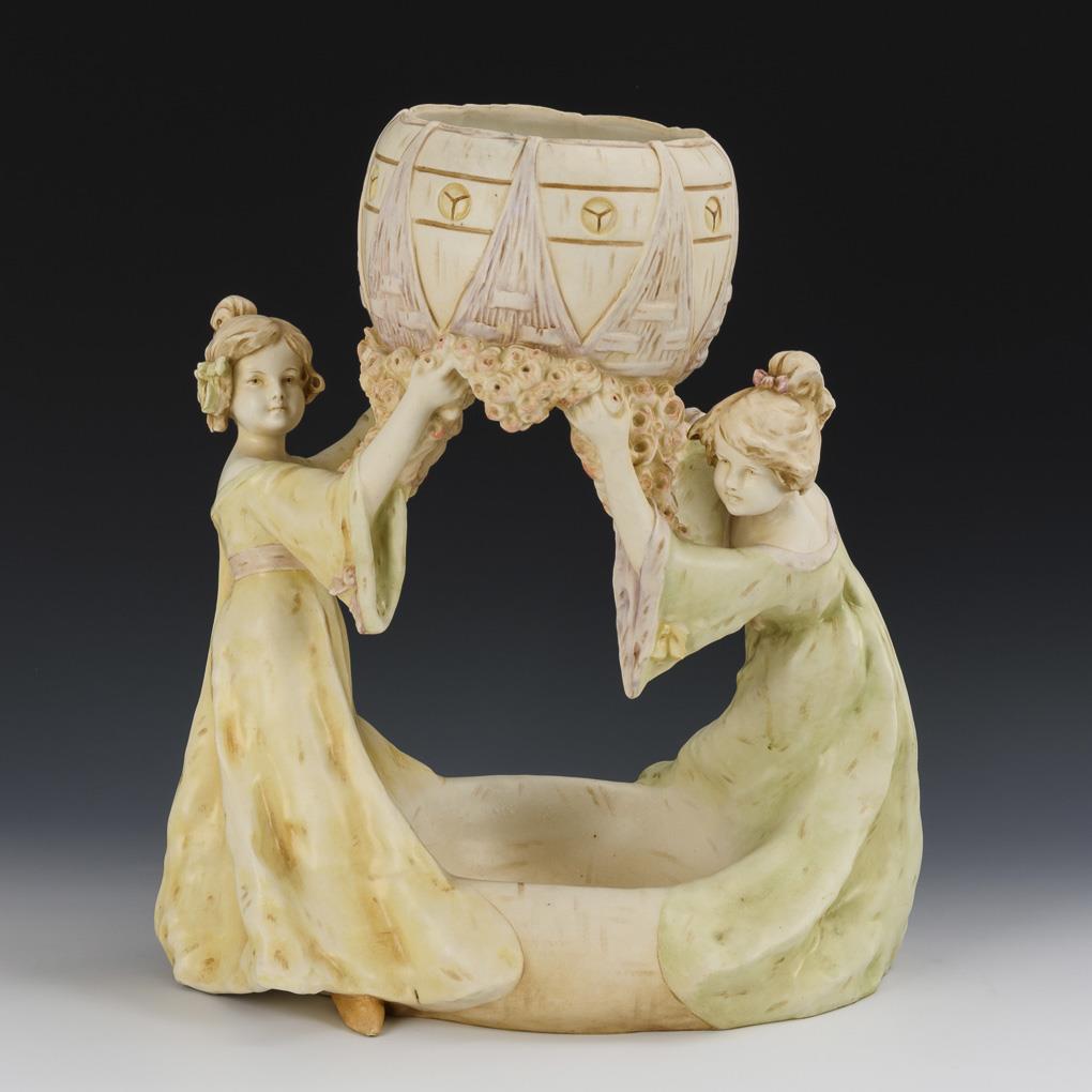 Jardiniere mit Mädchenpaar. Ernst Wahliss.