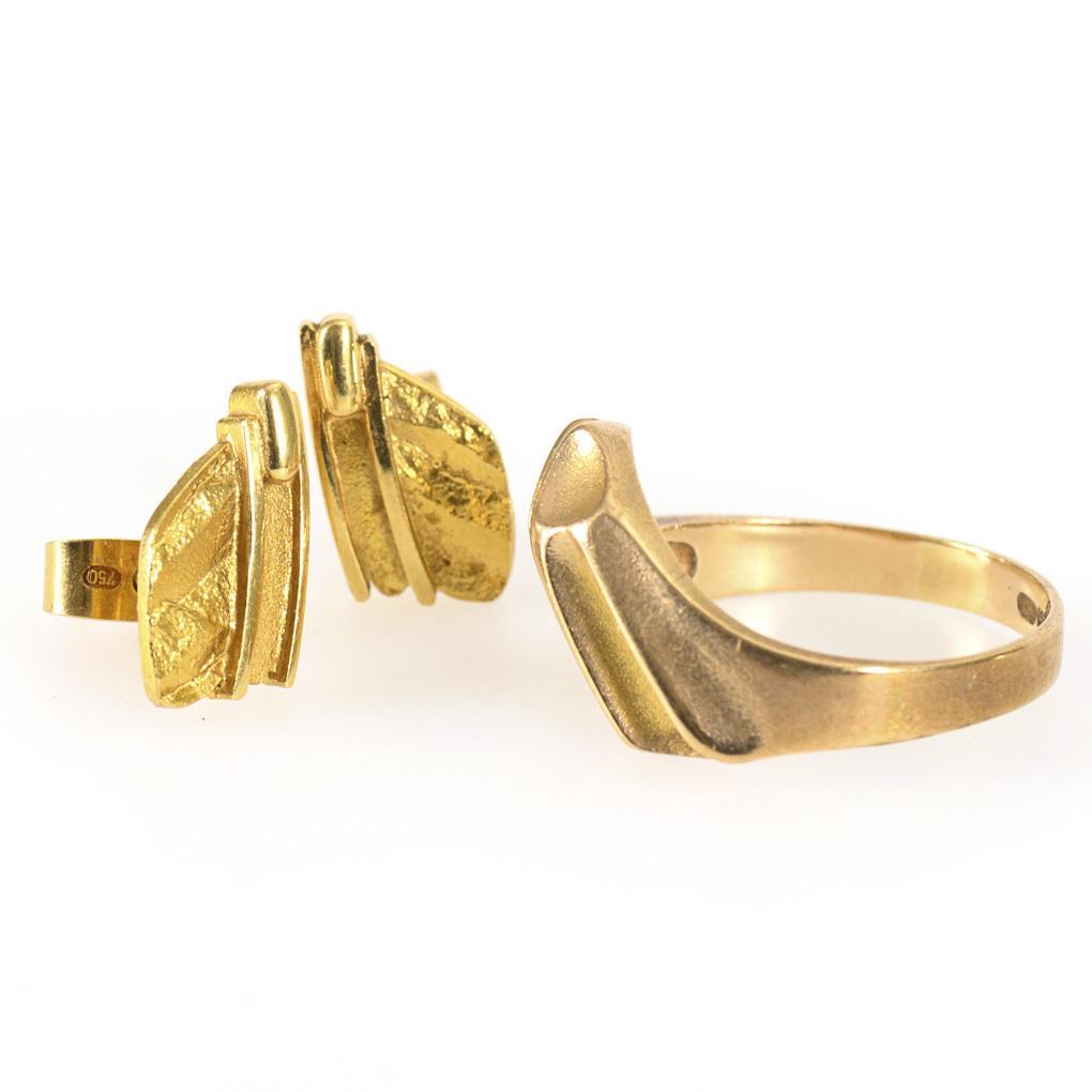 Ring Gelbgold 585 gestempelt. Punze: LAPPONIA E8 (1982). Ohrstecker Gelbgold 750 gestempelt. Ringgröße 56. Ohrstecker 1,2 x 0,7 cm. 3,7/3,7 g.