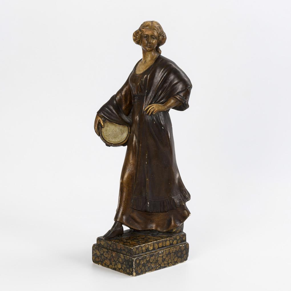 Jugendstil-Dame mit Tambourin. Kölner Kunstfiguren-Fabrik, H. & M. Löhnberg.