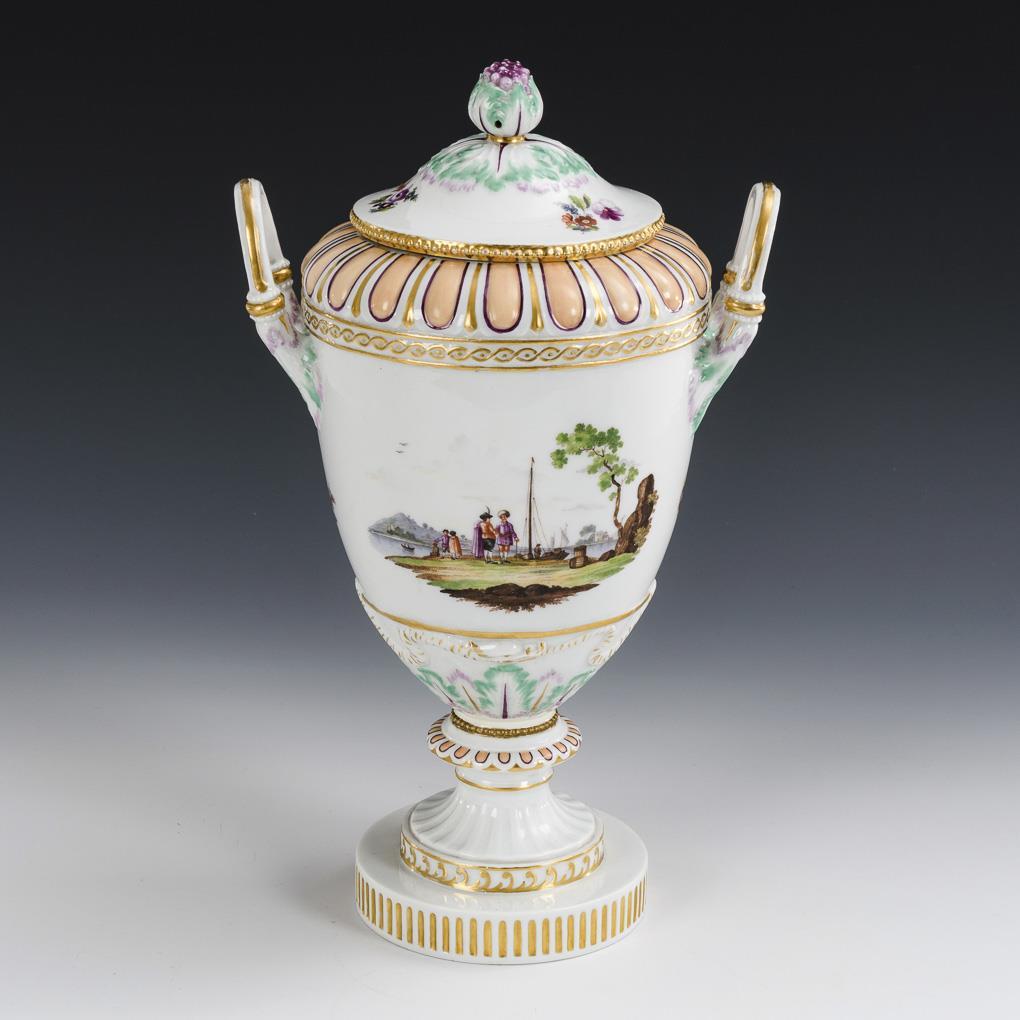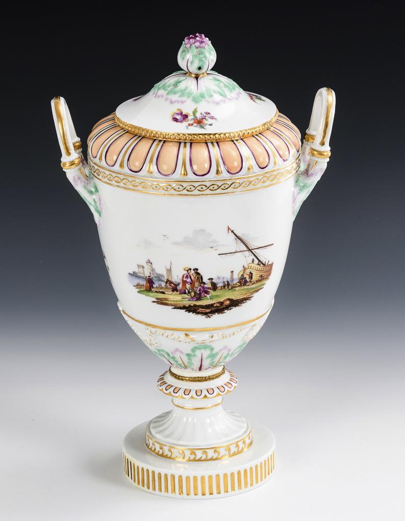 Deckelvase mit Kauffahrteimalerei. KPM Berlin.
