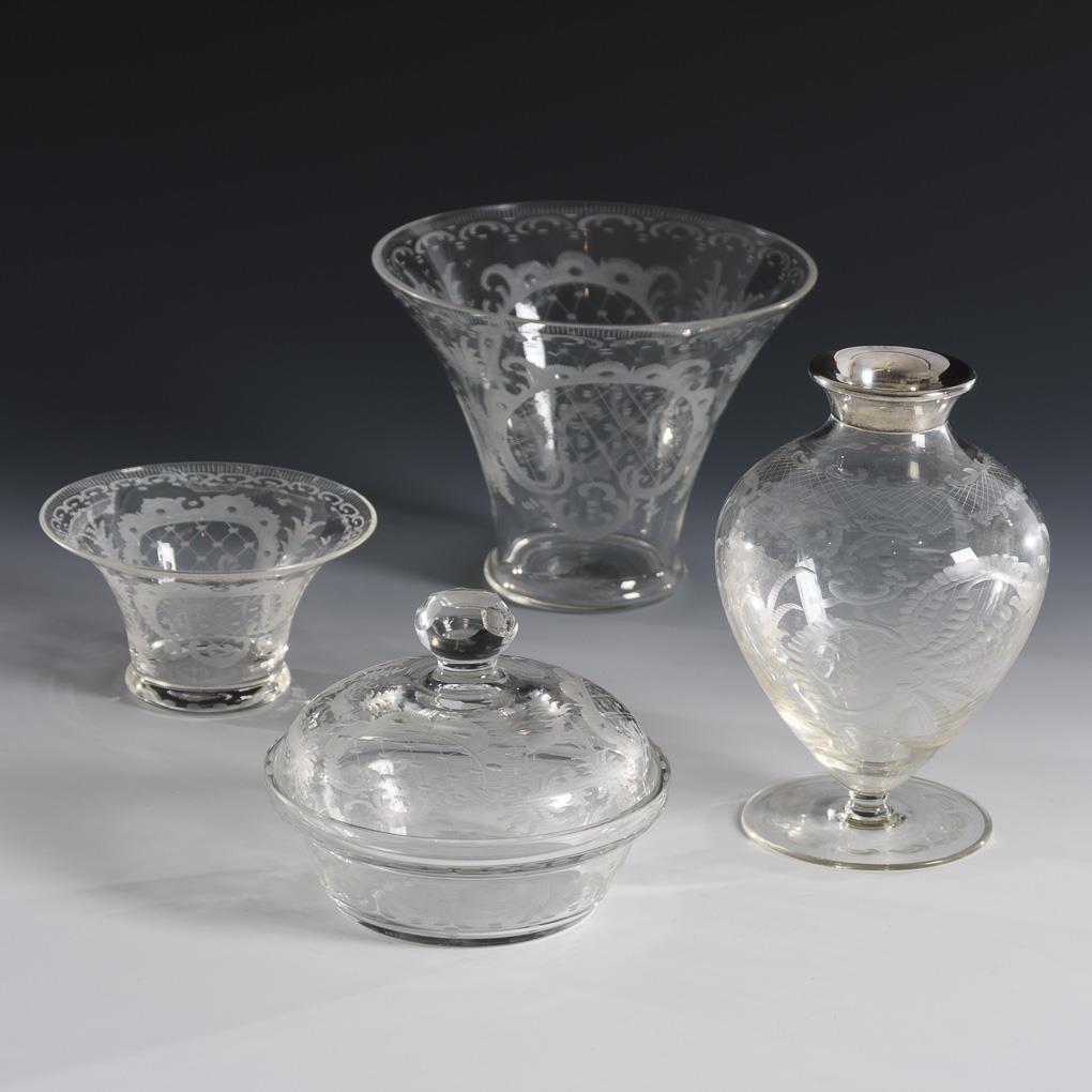 Konfektschale und 3 Vasen.