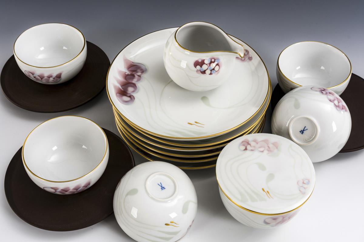 Seltenes Teeservice "Kumitate" mit dem Dekor "Windblume". Meissen.