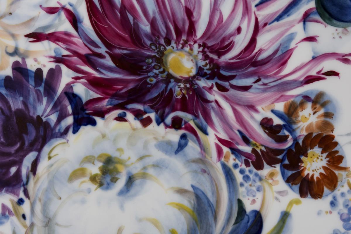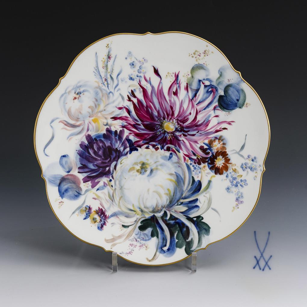 Tortenplatte "Blau-bunte Blumenmalerei". Meissen.