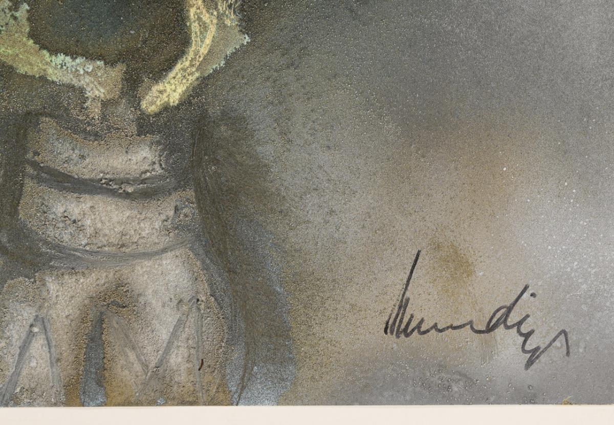 Spritztechnik auf Karton. Stiftsignatur.