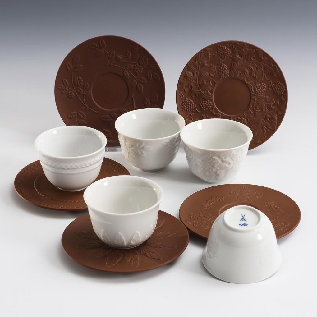 5 Kummen mit Untertassen. Meissen.